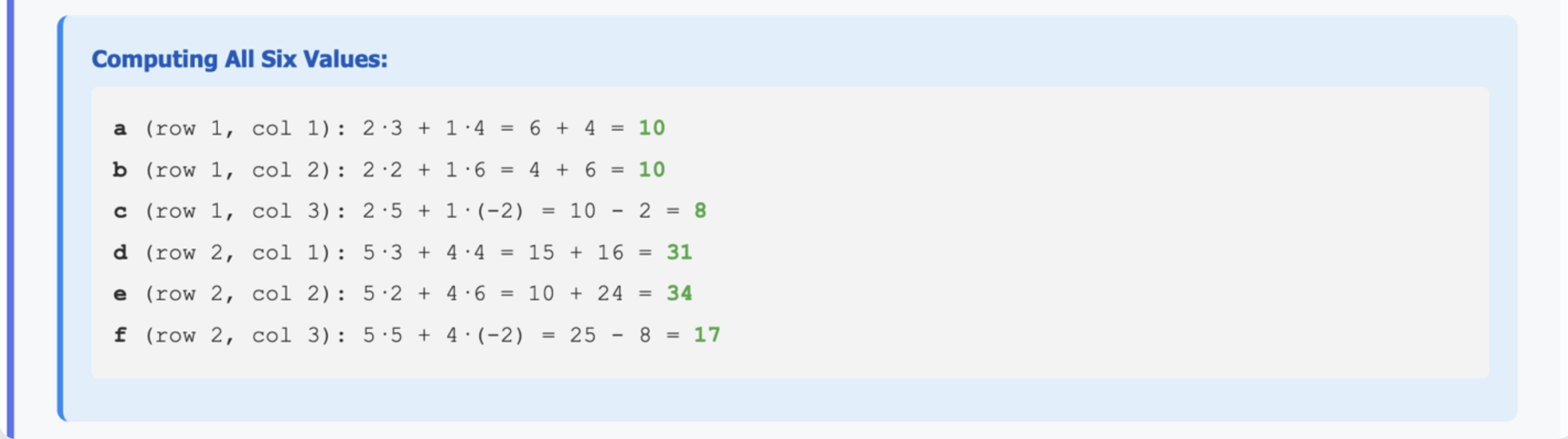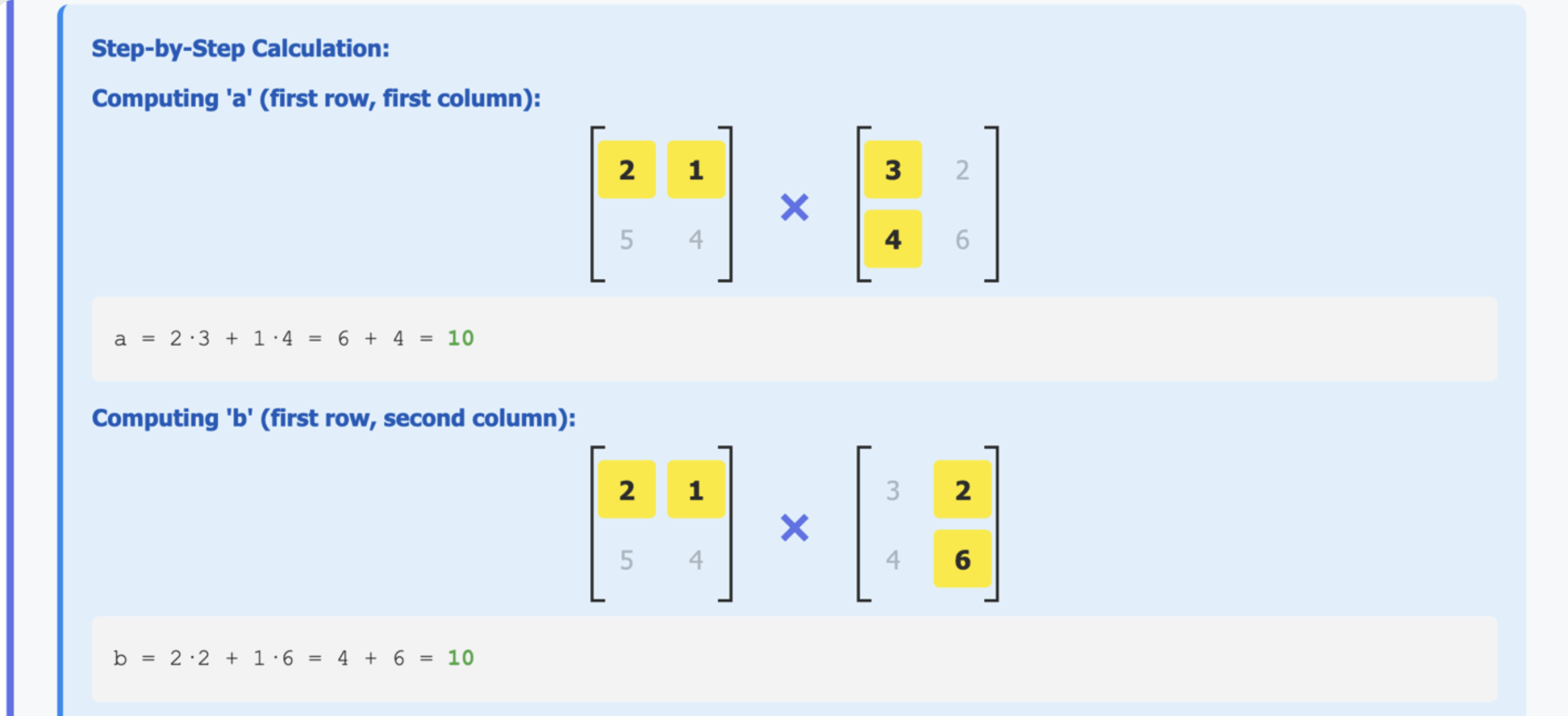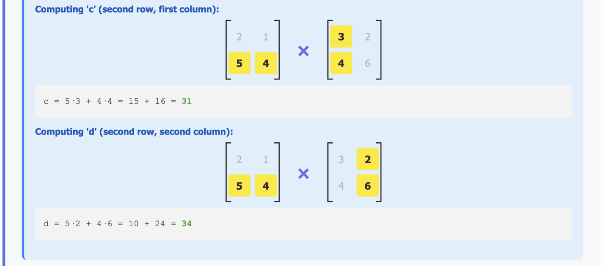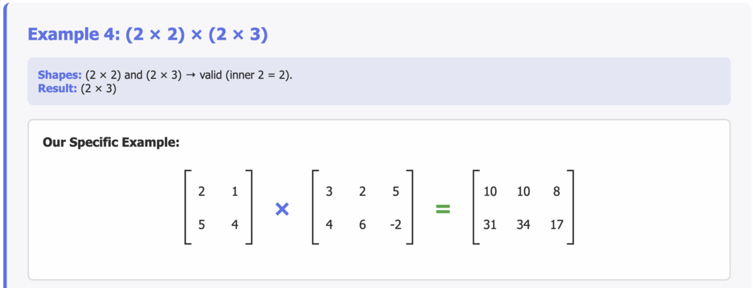 Work through them until you can “see” the shapes and even predict the result’s dimensions before doing any math. That intuition is what you’ll rely on when building AI models.