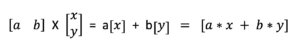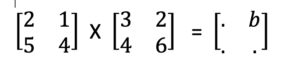 ‘b’ is in the first row of the result. And it is in the second column of the result. To get it we multiply and add the first row of the first matrix by the second column of the second matrix: