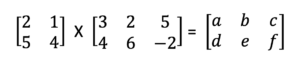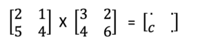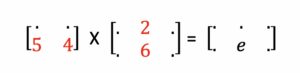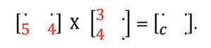 ‘c’ is in the second row of the result. And it is in the first column of the result. To get it we multiply and add the secondrow of the first matrix by the first column of the second matrix: