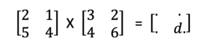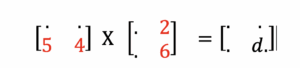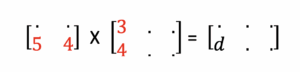 ‘d’ is in the first second of the result. And it is in the second column of the result. To get it we multiply and add the secondrow of the first matrix by the second column of the second matrix: