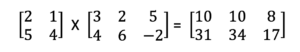 Shape check: inner dimensions match (2 = 2), so multiplication is valid.